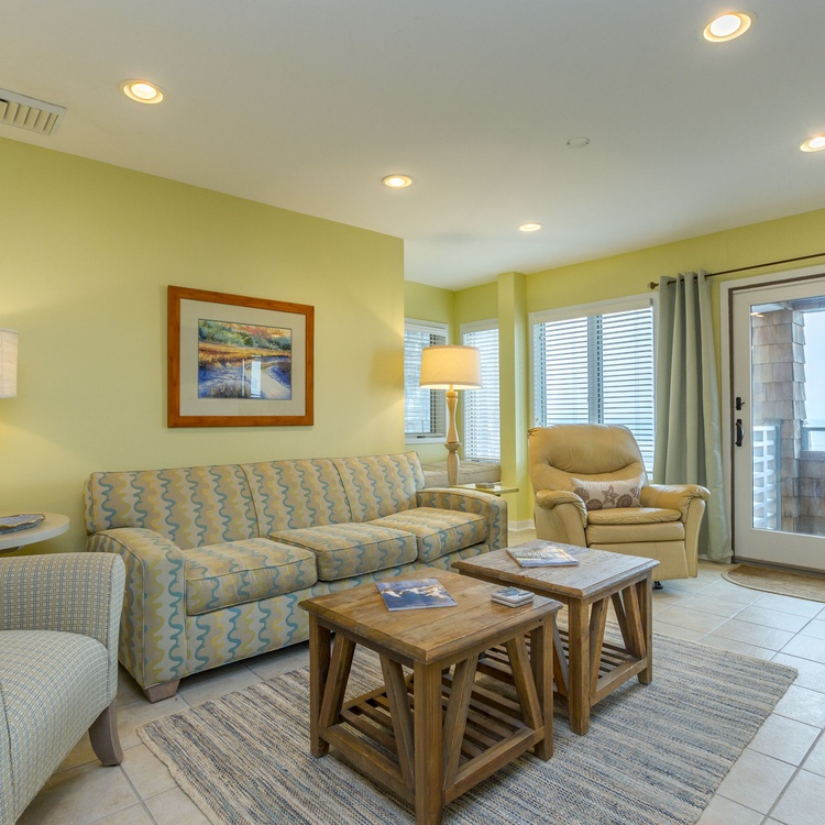 4429 Windswept Villa is a nicely furnished, updated 1-bedroom condo, perfect for a couple's getaway. We loved sitting in the chairs on the little balcony overlooking the ocean. This condo is on the third floor of a large building; if you are on a lower floor, views of the ocean are impaired by dunes and bushes, etc., so third floor is ideal. The condo has ample seating in the living room (a nice couch and a couple of chairs, plus a window seat!), a t.v., a eating area as well as a fully equipped kitchen. Washer and dryer worked well. Bedroom and bath were very nice. Absolutely NO complaints!Amy L. from Maryville, TN - 3/11/2018