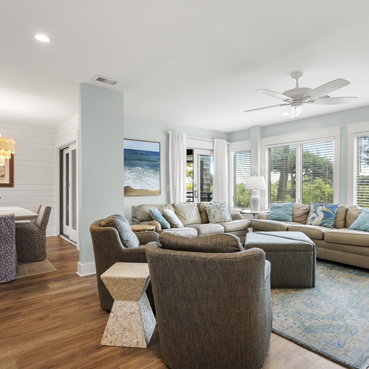 This first-floor, three-bedroom, three-bathroom Windswept unit is filled with an abundance of natural light. It features its own access to the boardwalk, making this villa truly just steps from the beach!