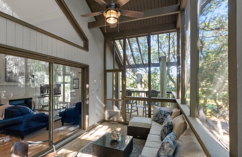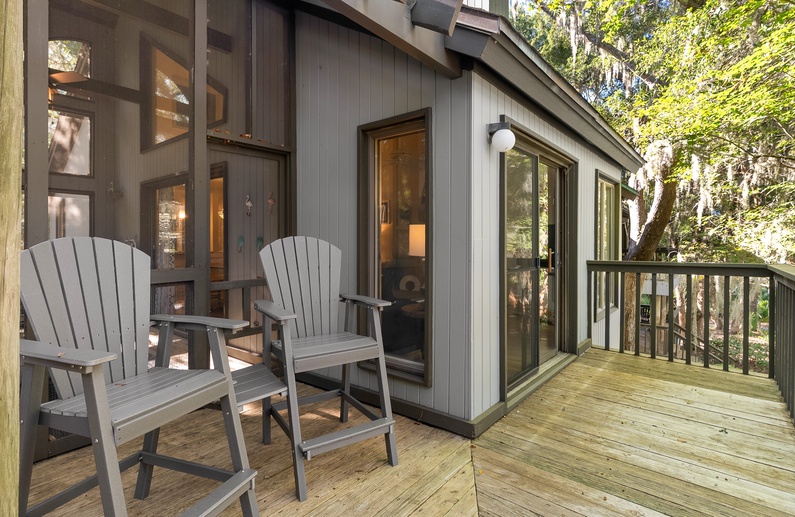 The lovely screened porch offers a comfortable sectional sofa and the open air deck features two lounge chairs. Both are great for soaking in the Kiawah breeze and views.