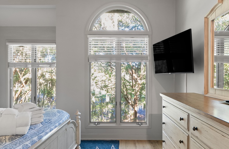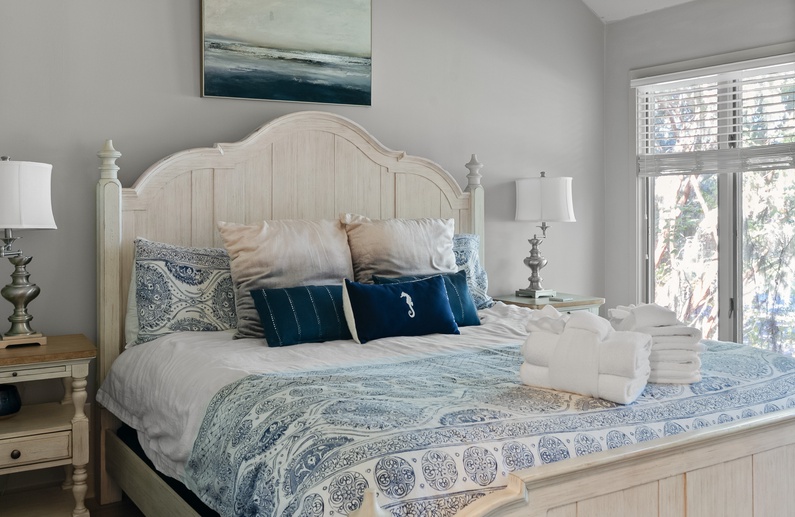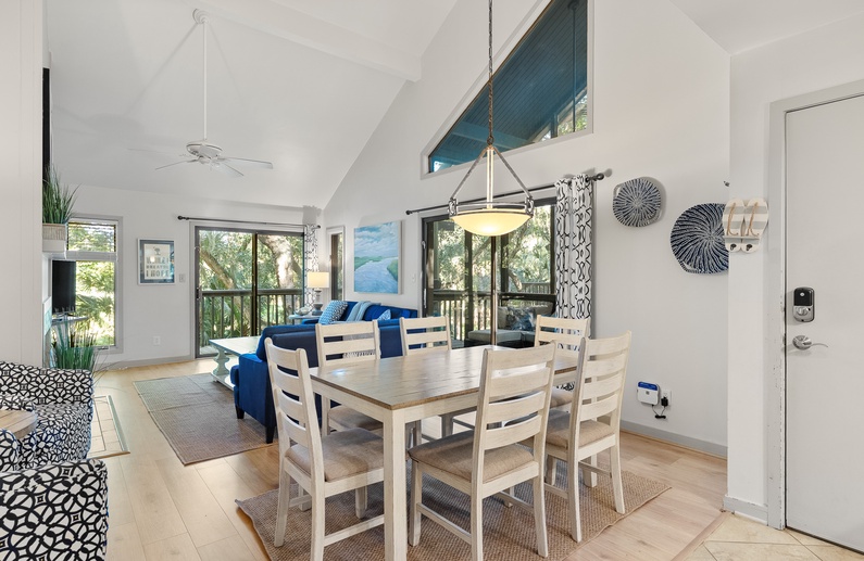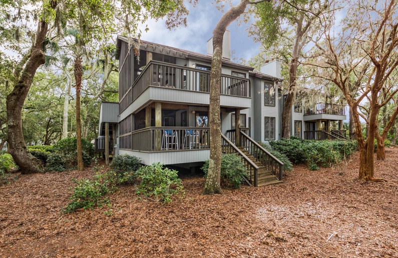 This updated Kiawah Island vacation rental offers two bedrooms and bathrooms, a spacious screened porch, and deck with a view of the park. The second-floor Parkside villa is just a 5-minute walk or quick bike ride to the beach.