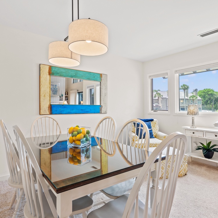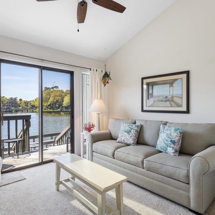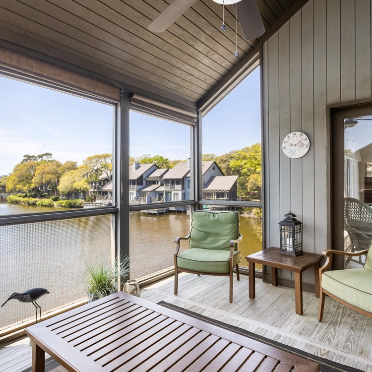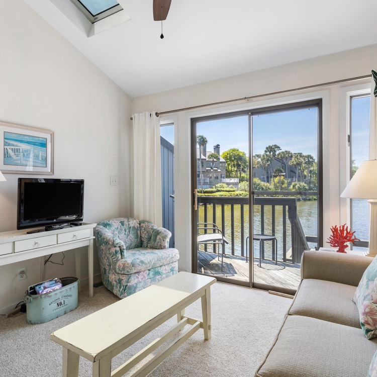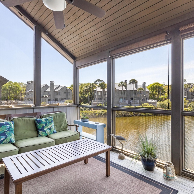 This Kiawah Island vacation rental is a Parkside Villa that offers 2 bedrooms, a screened porch, and a dock overlooking the lagoon. The villa is a 5-minute walk to the beach.