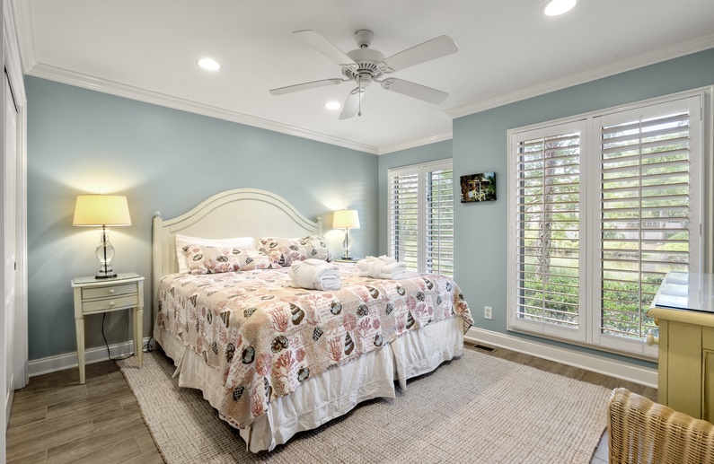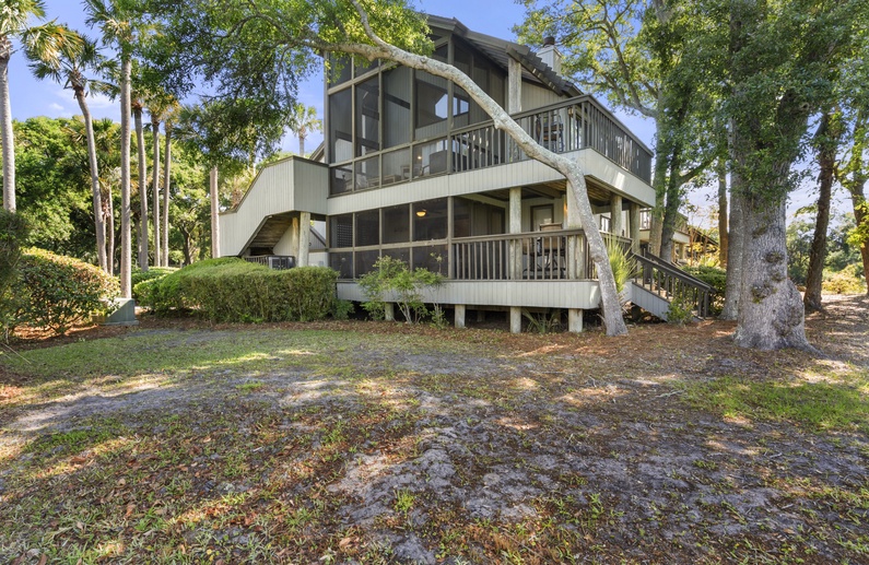 This renovated first-floor Kiawah Island vacation rental has peaceful lagoon views, a deck and screened porch, and is a five-minute walk to the beach.