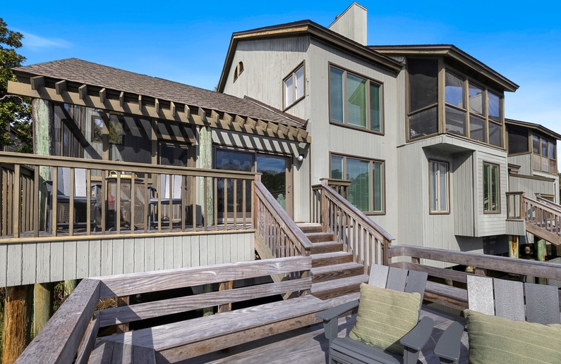 This 3 bedroom/3 full bath Kiawah Island vacation rental offers a screened porch, private dock, an easy 6-minute walk to the beach, and a stunning view over the lagoon in the Parkside community!