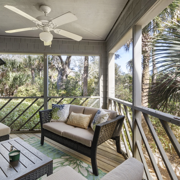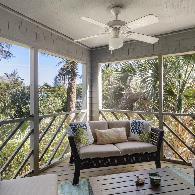 This Kiawah Island vacation rental sleeps 4, offers a screened porch that overlooks Kiawah's award-winning Roy Barth Tennis Center, and is a 10-minute walk to the beach.