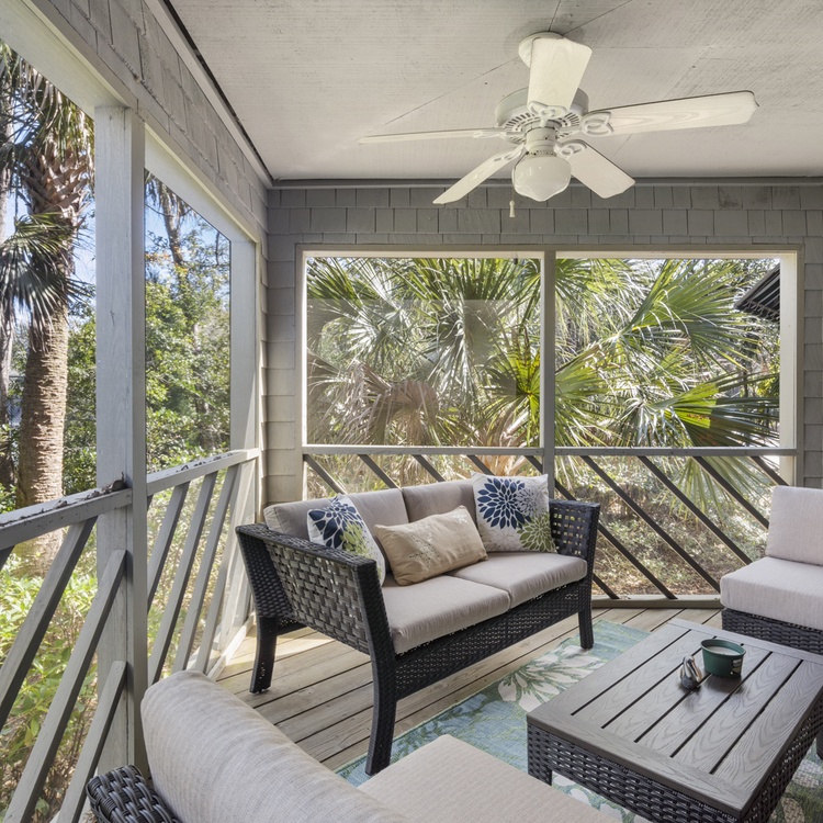 The screened porch is a perfect spot to drink your coffee, lounge, and watch tennis!