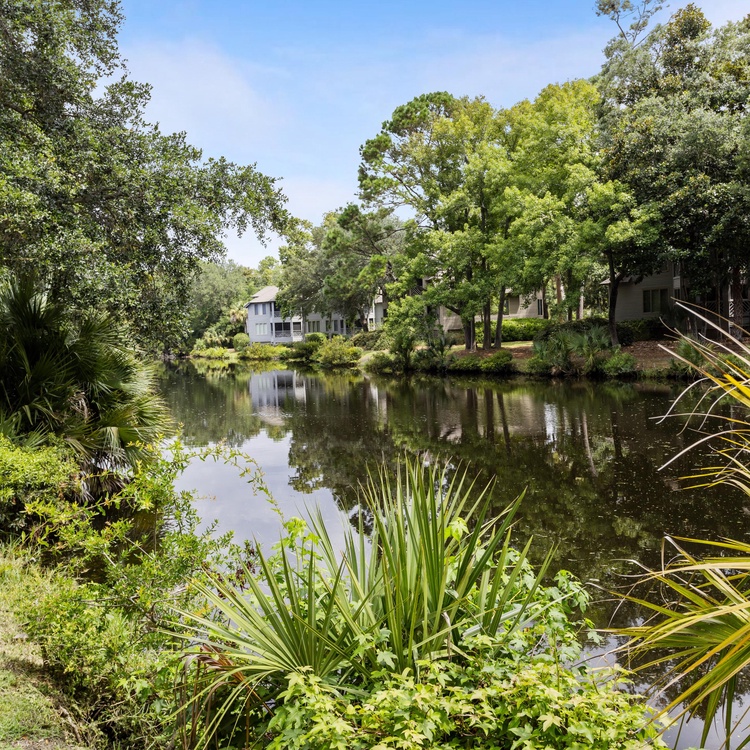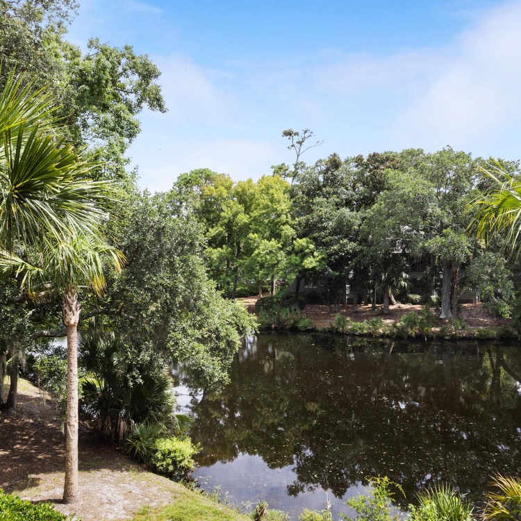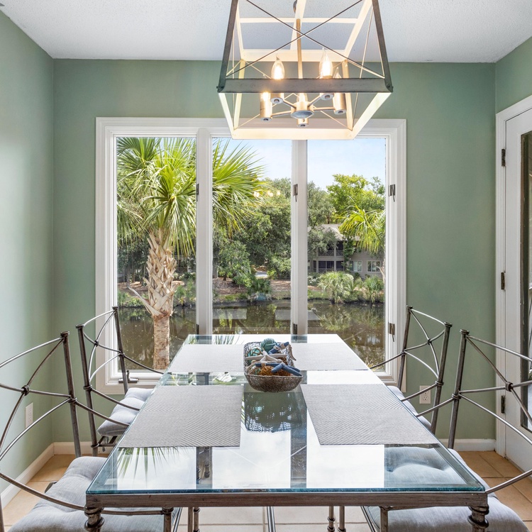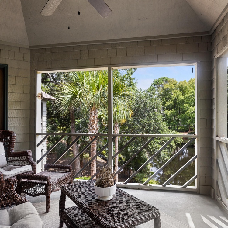 This Kiawah Island vacation rental is a beautifully updated Tennis Club villa with two bedrooms, a screened porch, and peaceful lagoon views. The villa is a 7-minute walk to the beach.