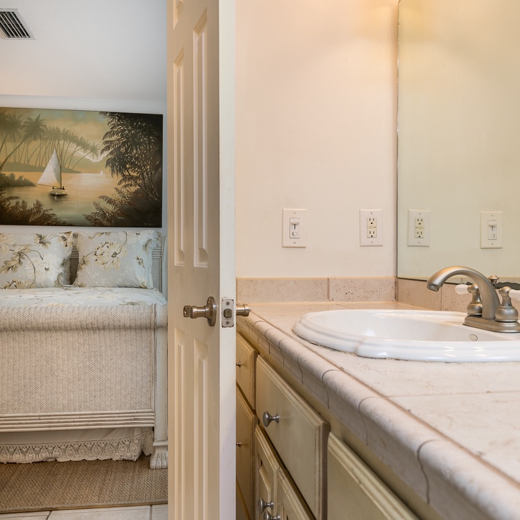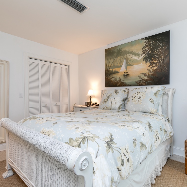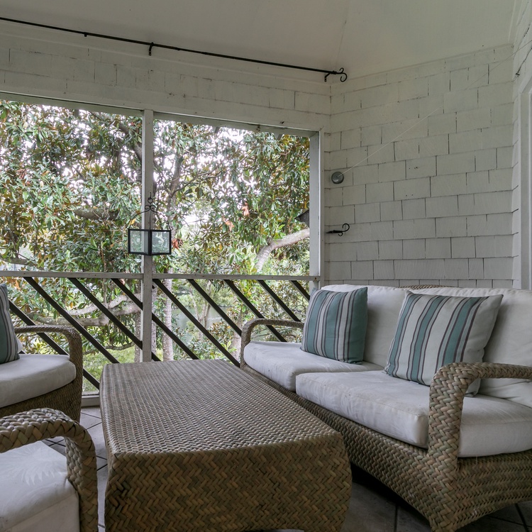 The screened porch overlooks the lagoon and provides cozy seating and a desirable ceiling fan, perfect for starting the day with your coffee or unwinding in the evening with a cocktail.