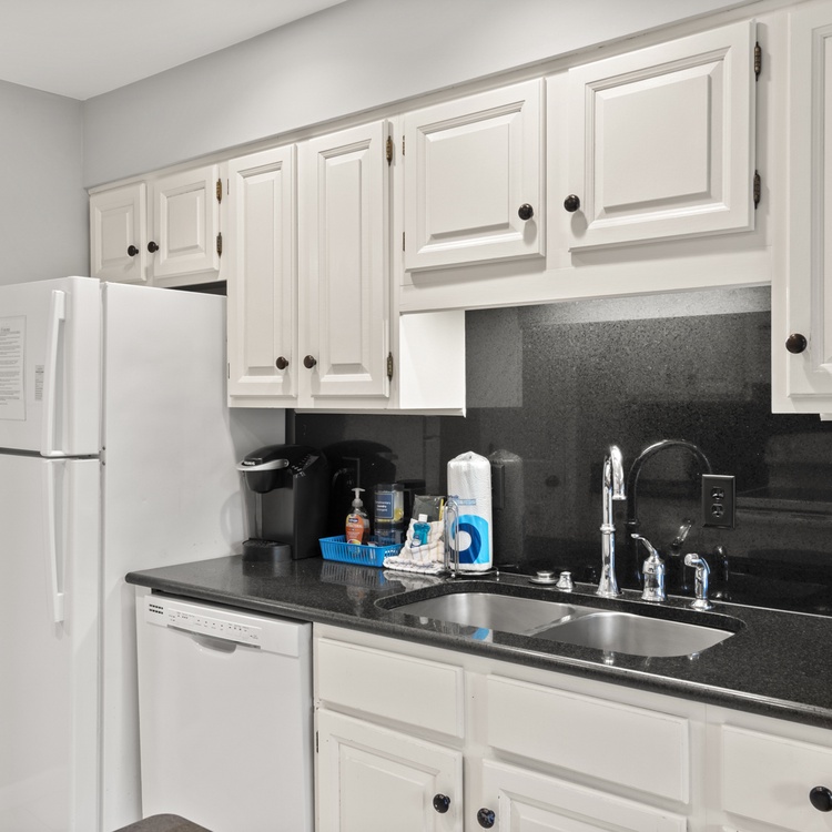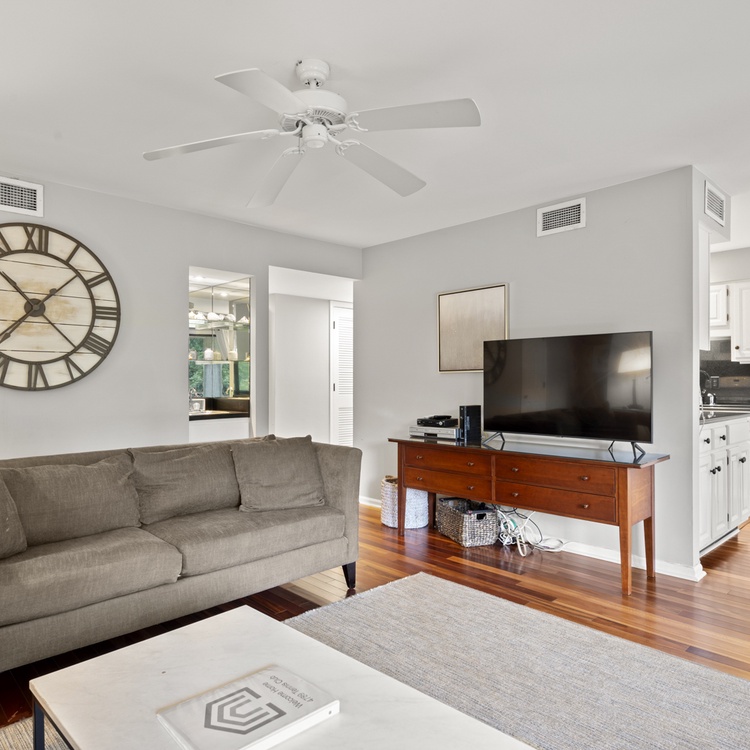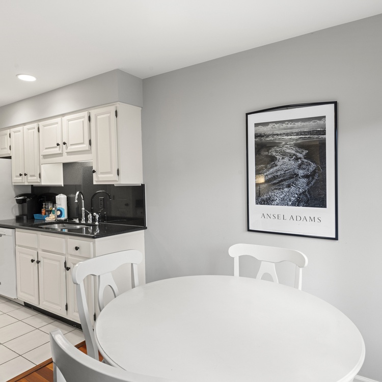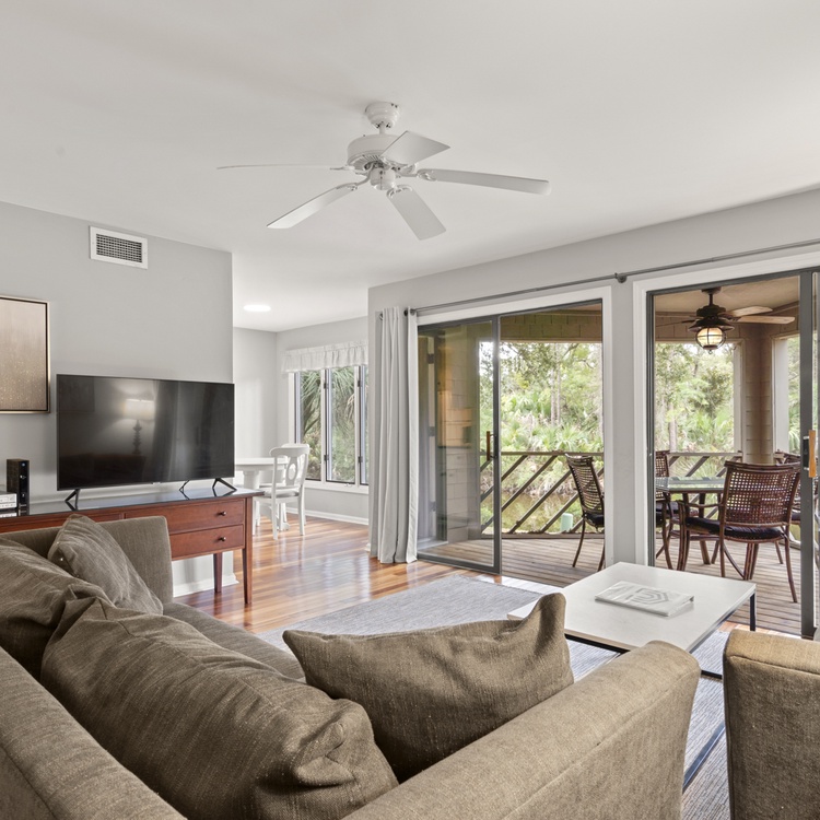 Conveniently located on the first floor, this Tennis Club Villa is an ideal beach retreat. The main living area has two sofas, a TV, and direct access to the screened porch. The eat-in kitchen offers lovely views of the lagoon and is well-equipped for preparing your vacation meals.