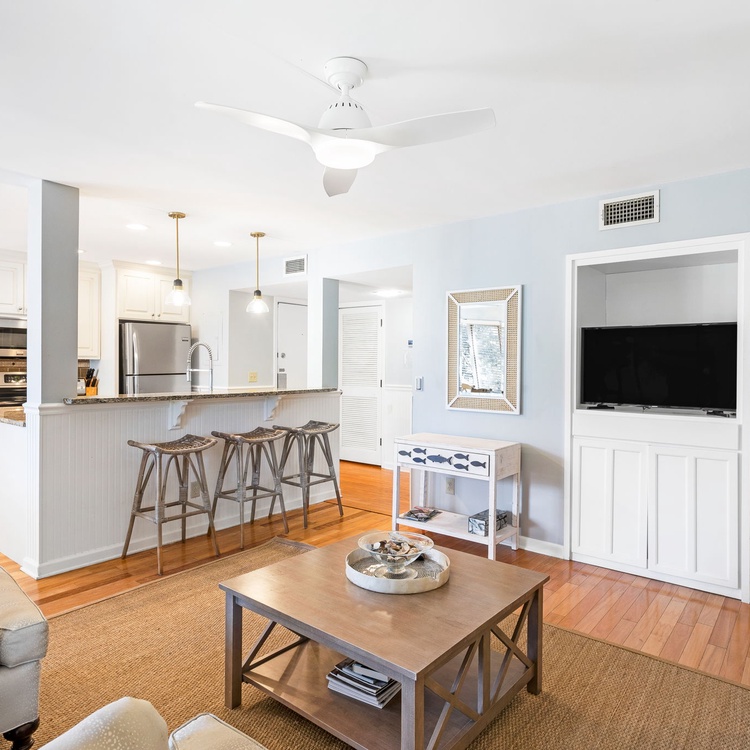 This beautifully updated Kiawah Island vacation rental boasts three bedrooms, lagoon views, and a lovely screened porch. Just a 5-minute walk to the beach, this first-floor Tennis Club villa is conveniently located next to the best beach access point in all of Tennis Club.