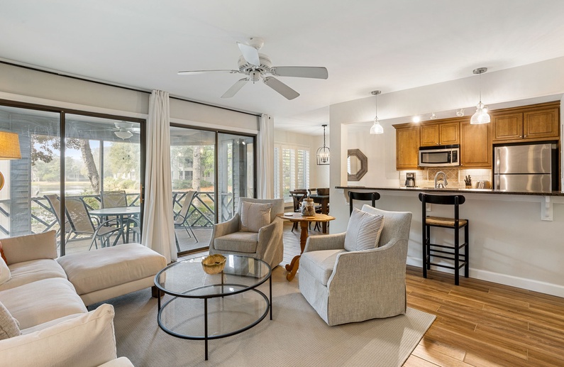 This Kiawah Island vacation rental is a Turtle Cove villa with 3 bedrooms, 3 bathrooms, a gorgeous lagoon view, and a screened porch. The villa is a short 5-minute walk to the beach.