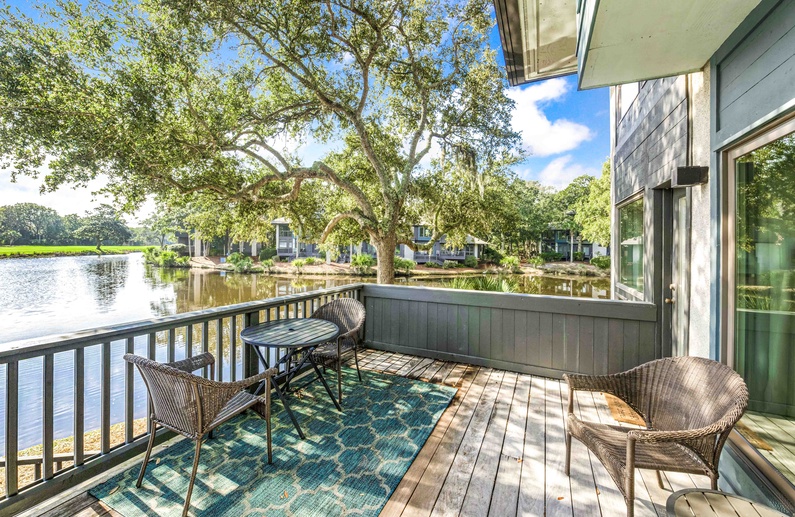 We have been coming to Kiawah Island for 16 years and this is the best rental we have stayed in. From the moment you walk in, you can see the amazing view of the lagoon and spacious condo. The furnishings are high quality and professionally decorated. The beds are extremely comfortable and the unit is spotlessly clean. The kitchen is very well stocked, you will find everything you need. We hated to leave the condo as we enjoyed sitting on the deck and watching the birds, deer and alligator. Very relaxing! The property is in a quiet location and quick bike ride to the beach.