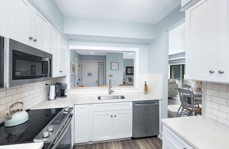 Beautifully updated unit with a well stocked kitchen. Crisp and clean with a most welcoming feeling. Love it!
