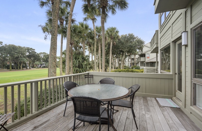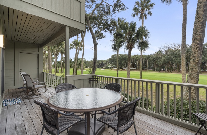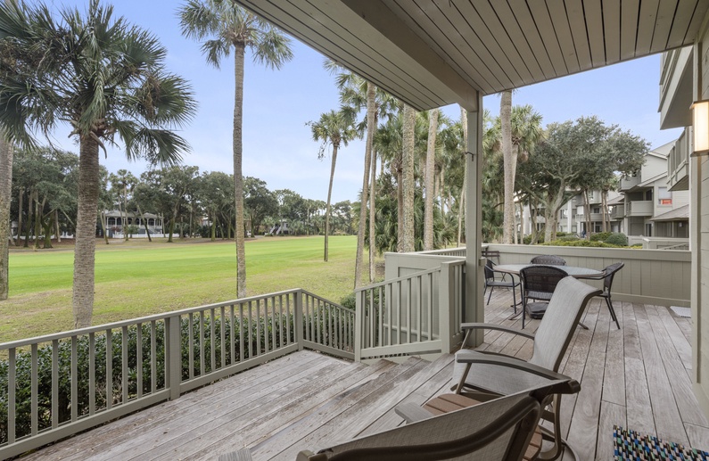With views of the Turtle Point Golf Course, the deck is yet another amazing place to lounge or enjoy a meal al fresco.