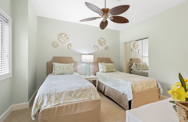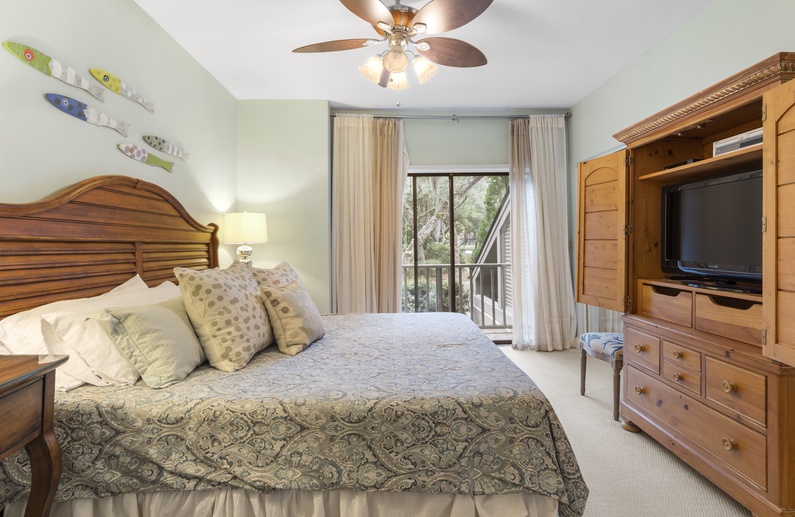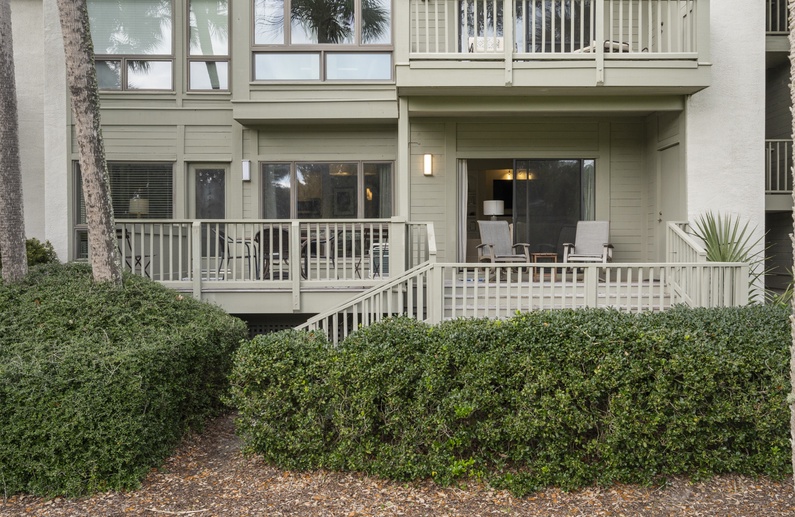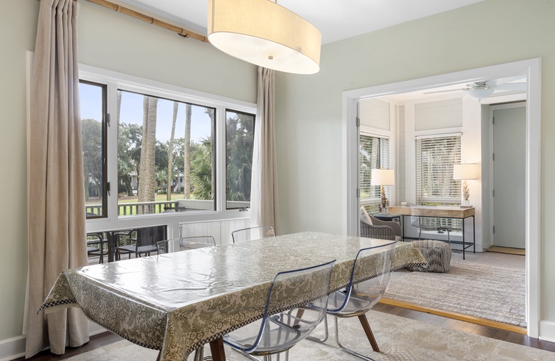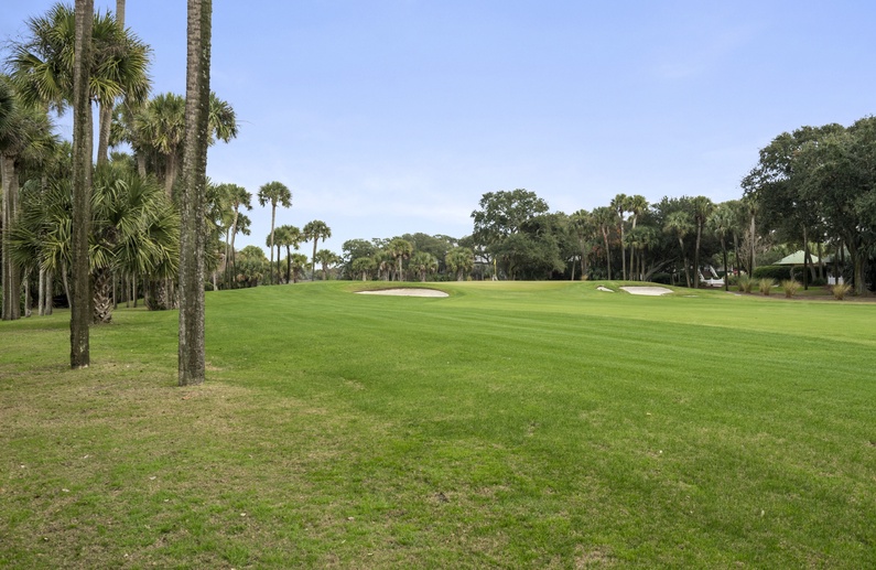 This Kiawah Island vacation rental features 2 bedrooms, a sunroom, and a spacious deck overlooking the beautiful Turtle Point Golf Course. This villa also offers a short 5-minute walk to the beach.