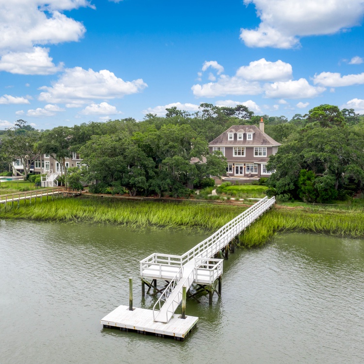 This waterfront Kiawah Island vacation rental home features five bedrooms, a private pool and spa, a deep water dock, and captivating views of the Kiawah River. The home is conveniently located in Kiawah's West Beach area, approximately a 5-minute bike ride from the beach.