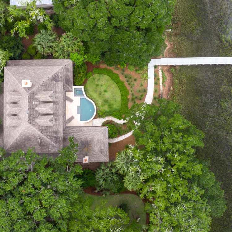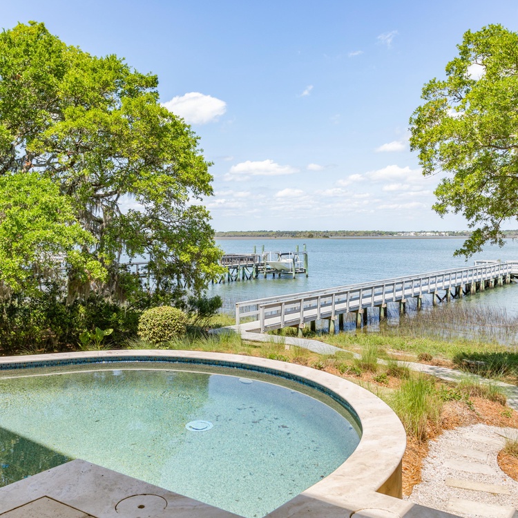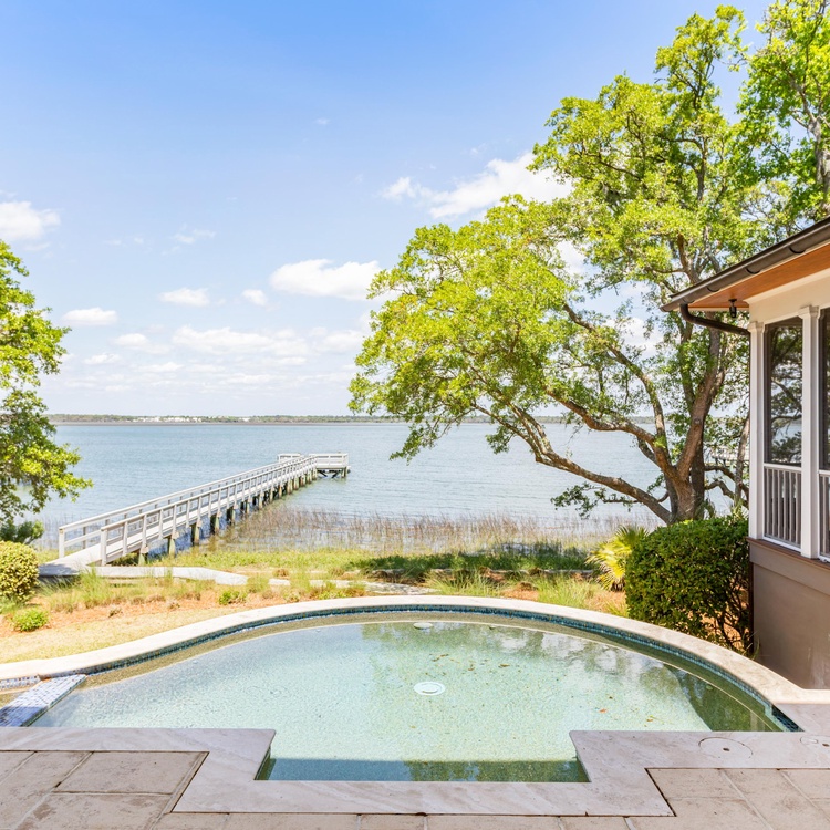 With a screened porch, pool deck, and private dock overlooking the Kiawah River, this home invites you to experience outdoor living at its finest. The spacious screened porch has comfortable seating, a ceiling fan, and access to the deck. Truly an outdoor oasis, the sundeck boasts a private pool, a spa, and lounge seating surrounded by lush vegetation. The pool is roughly 11.5x16, 4 feet deep. Follow the path to the private deep-water dock, where you'll enjoy watching sunsets and sunrises, catching glimpses of dolphins, or sipping an evening cocktail by the water. The dock allows you to launch a kayak directly into the water or arrange for a boat rental during your stay.