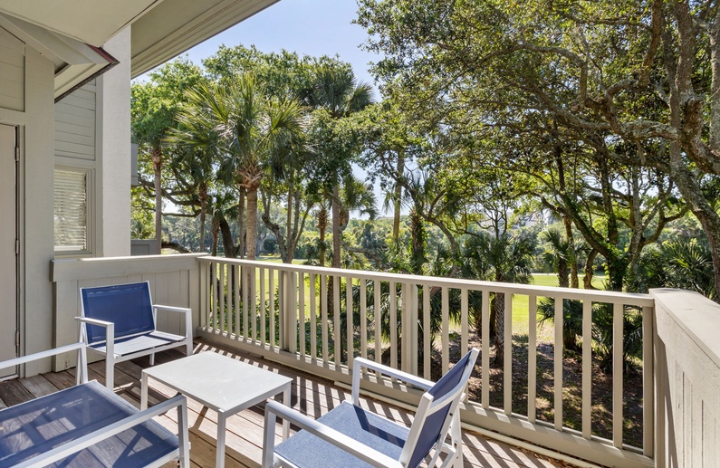 For guests who prefer to dine al fresco, step out to the screened porch. This area has a large outdoor table surrounded by eight chairs. For even more outdoor fun, head to the back deck, where sweeping golf course views await.