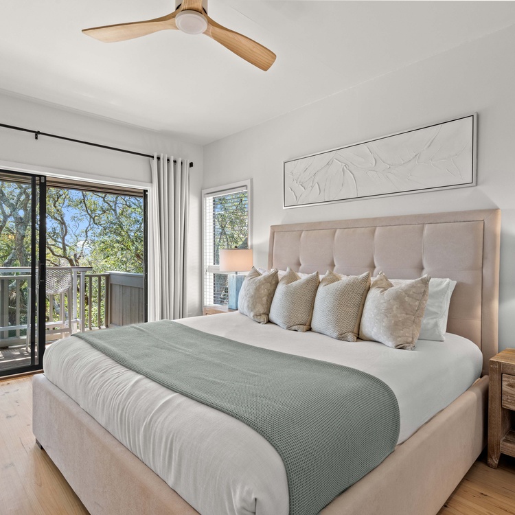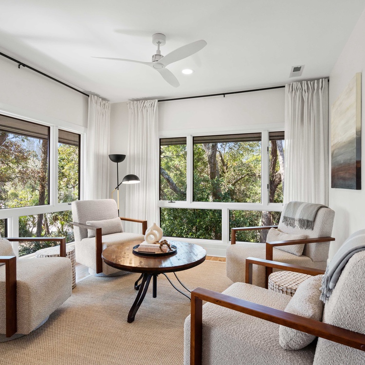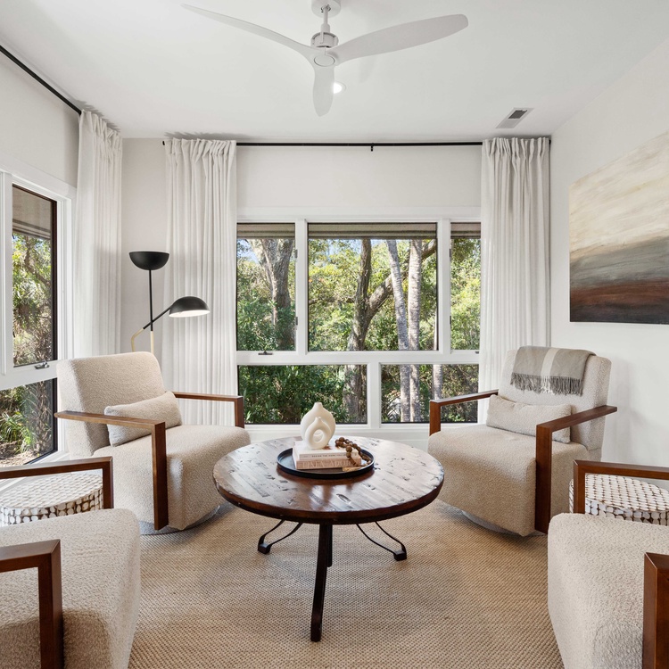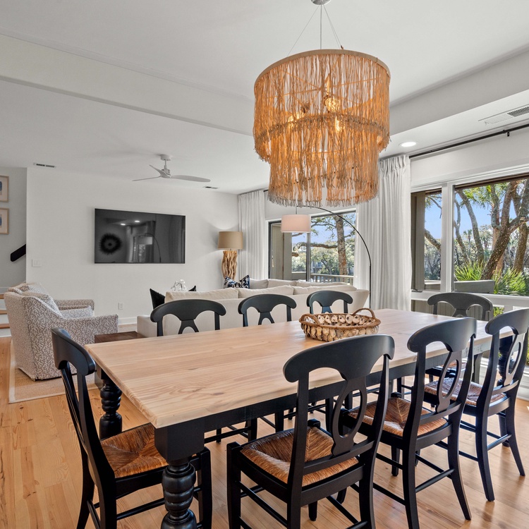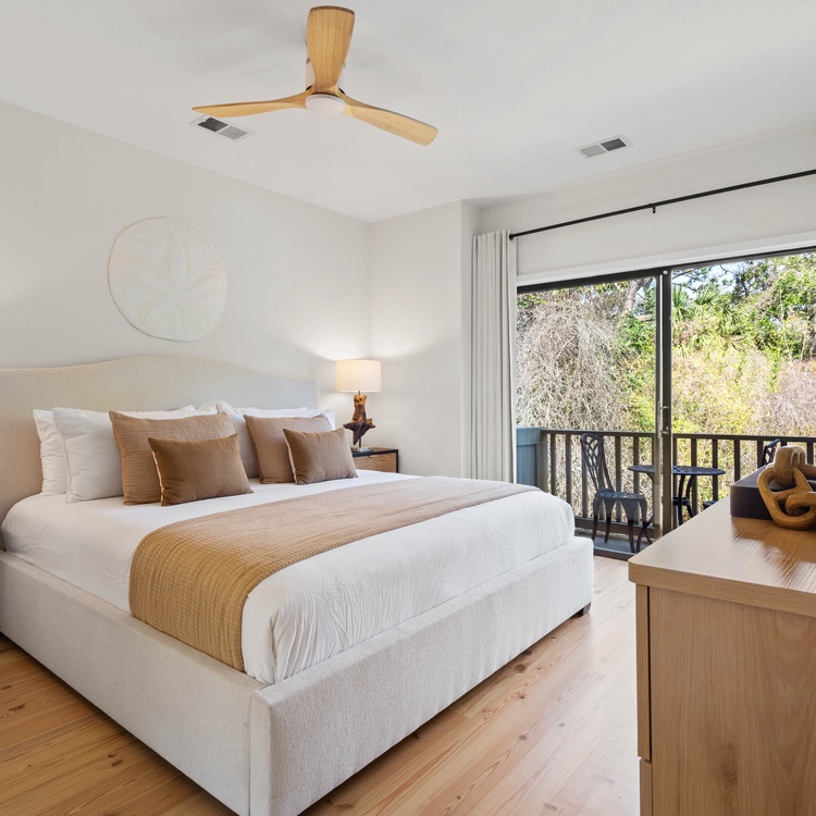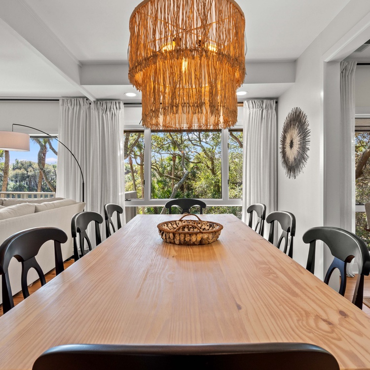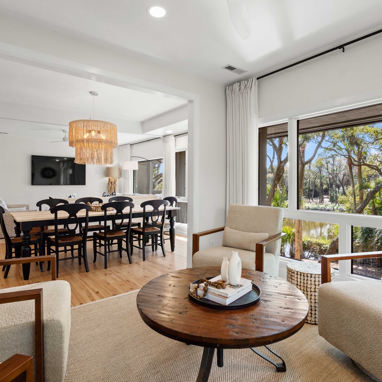 Renovated in 2023, this Kiawah Island vacation rental is a two-story villa that features 3 bedrooms, an open living space, a lovely sunroom, and a deck with golf and lagoon views. The villa is less than a 5-minute walk to the beach.