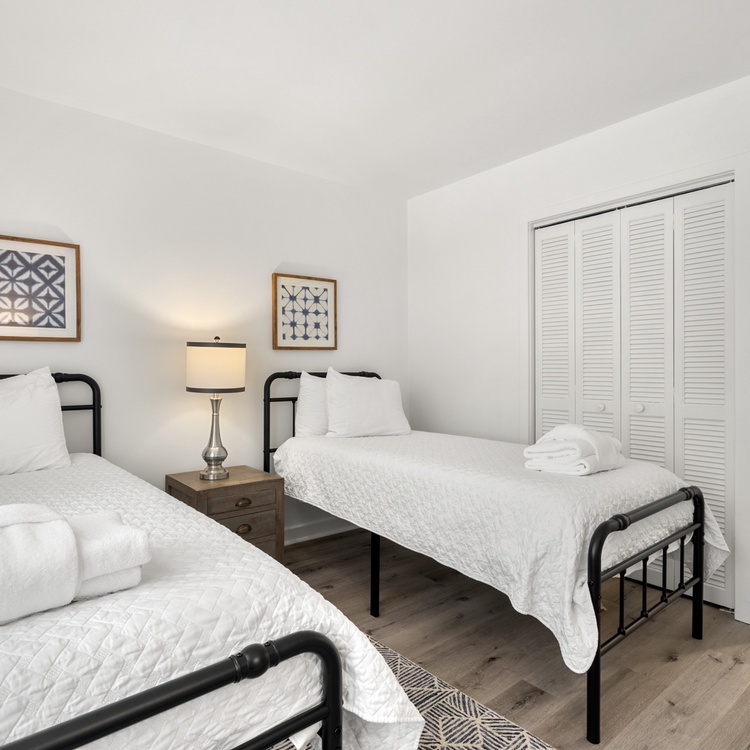 The third bedroom is perfect for kids as it offers 2 twin-sized beds. This bedroom has access to the secondary bathroom just down the hall.
