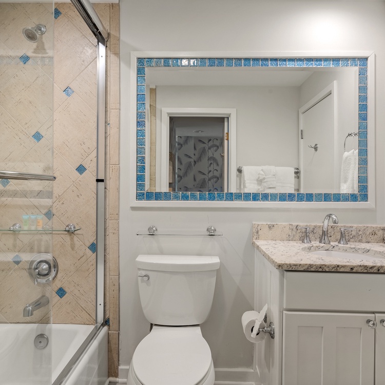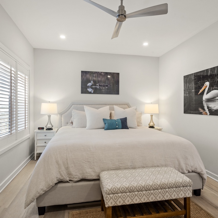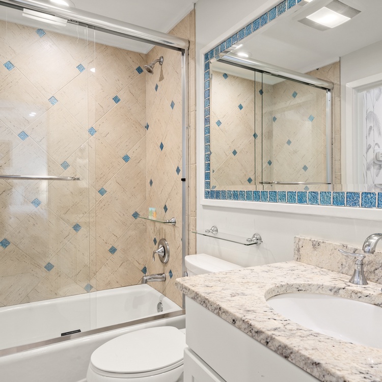 The secondary bedroom features a king-sized bed and scenic views of Kiawah Island. This bedroom offers a secondary bathroom with a tile shower and bathtub combination that can also be accessed from the hall.