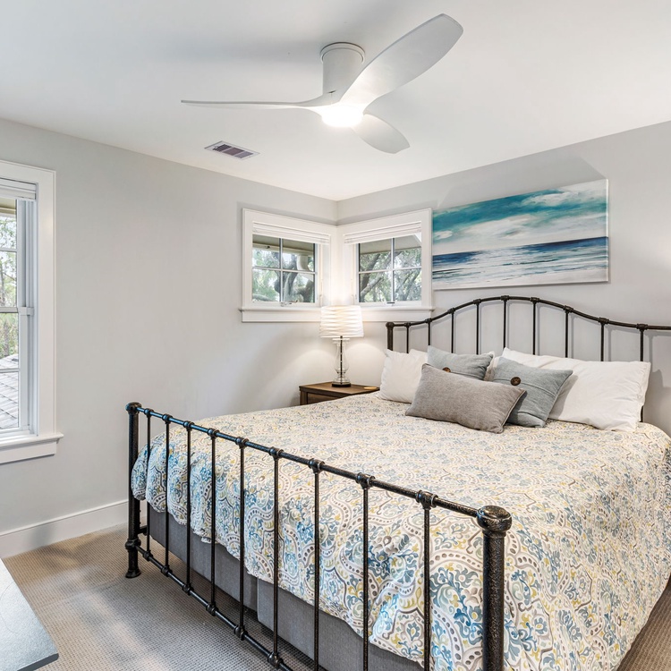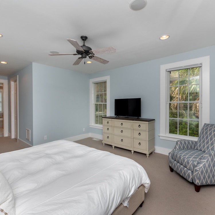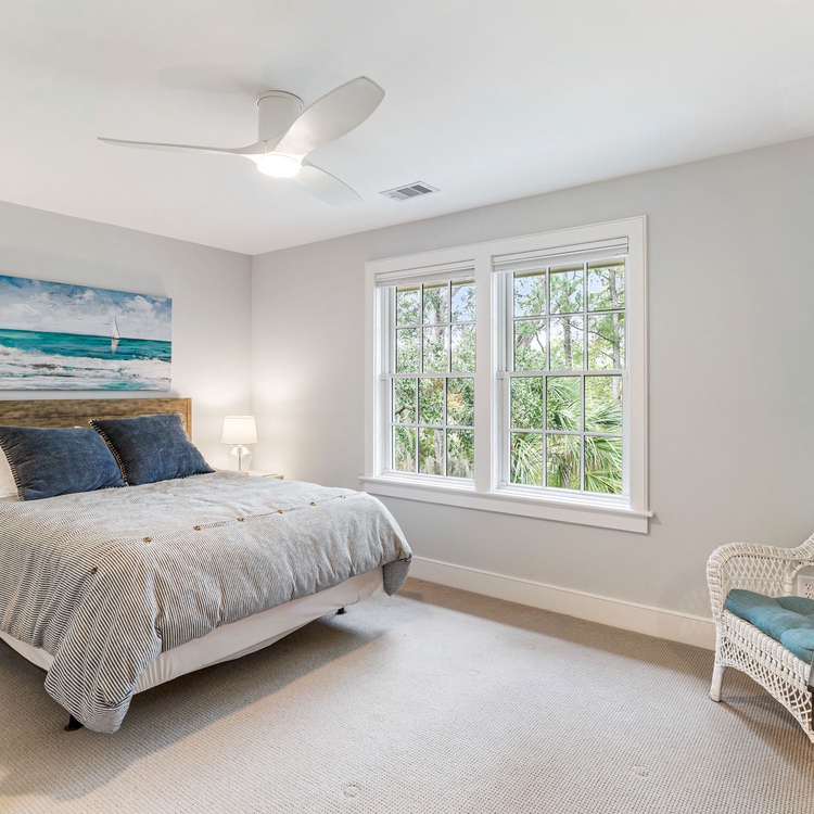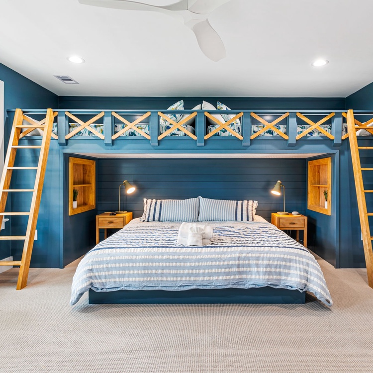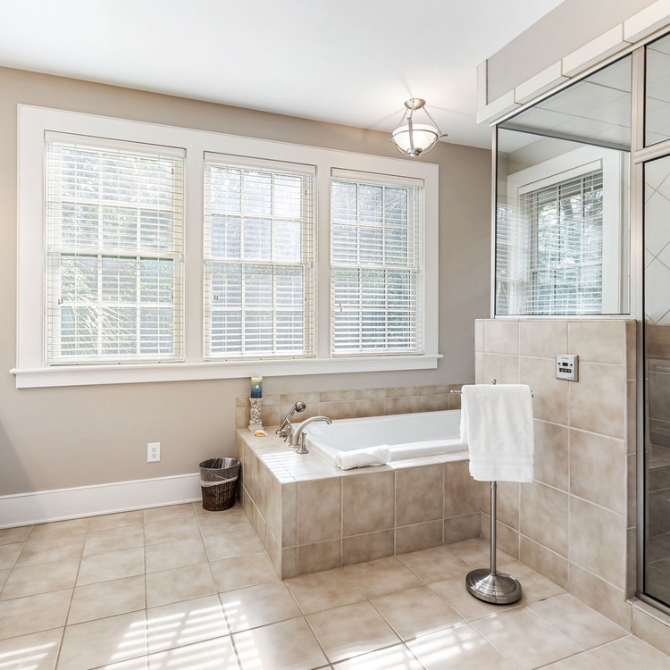 All bedrooms received new furniture, new carpet, and TVs with Rokus as of 2020. The first-floor primary suite features a Sleep Number king-sized bed and private bathroom with shower and soaking tub. The second-floor suite features a king-sized bed and private bathroom. The third bedroom features one queen-sized bed and a private bathroom. The fourth bedroom has a unique bedding set-up with two twins over a king-sized bed (see photos). This bedroom has access to a brand new (2024) hall bathroom with a walk-in shower.
