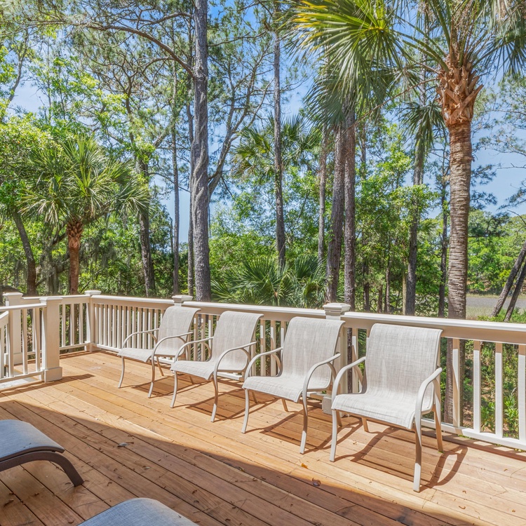 Welcome to paradise! Walk into the home and immediately notice the open floor plan and abundance of natural light. The living area, directly in front, hosts a comfortable couch, 4 swivel chairs, and a TV perfect for watching the big game or a movie. The living area is open to the dining and kitchen areas. The dining room table can sit 8 guests comfortably. The fully-equipped renovated kitchen features a center island with barstool seating for 3, white cabinetry, granite countertops, and top-of-the-line stainless steel appliances, including a gas stove. The dining area offers easy access to the screened porch and back deck with gorgeous marsh views and comfortable furnishings. Guests are welcome to use the gas grill on the back deck. A half bathroom completes the first-floor common space.