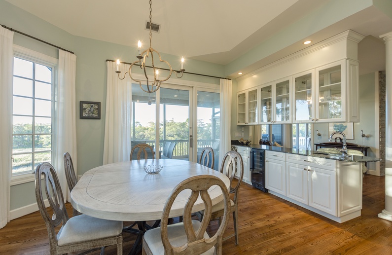 Located in Vanderhorst Plantation, this home’s reverse floor plan maximizes the views of Kiawah’s incredible marsh and natural beauty. Gorgeous sunsets can be seen nightly directly from the home! The beautiful home is located about 5 minutes via bike from the beach and is across from the famed Ocean Course Golf Course.