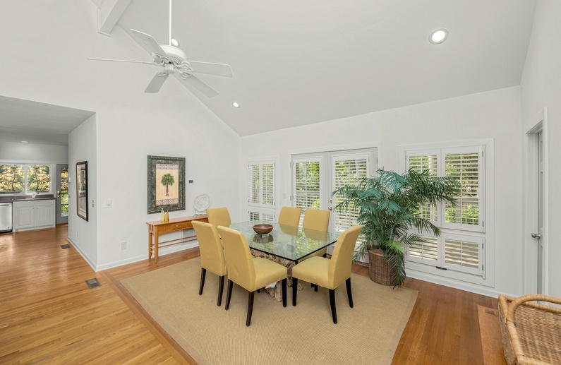This Kiawah Island vacation rental offers four bedrooms, a private pool and spa, and an open floor plan. The home is about a 3-minute walk to the beach. This lovely home was reintroduced to the rental market in 2021.