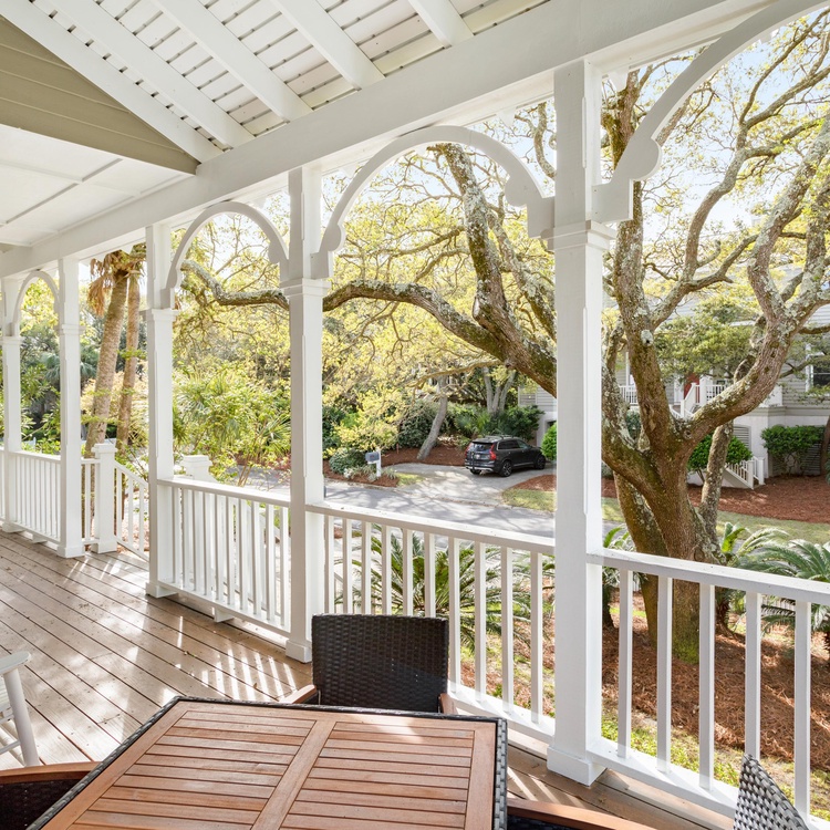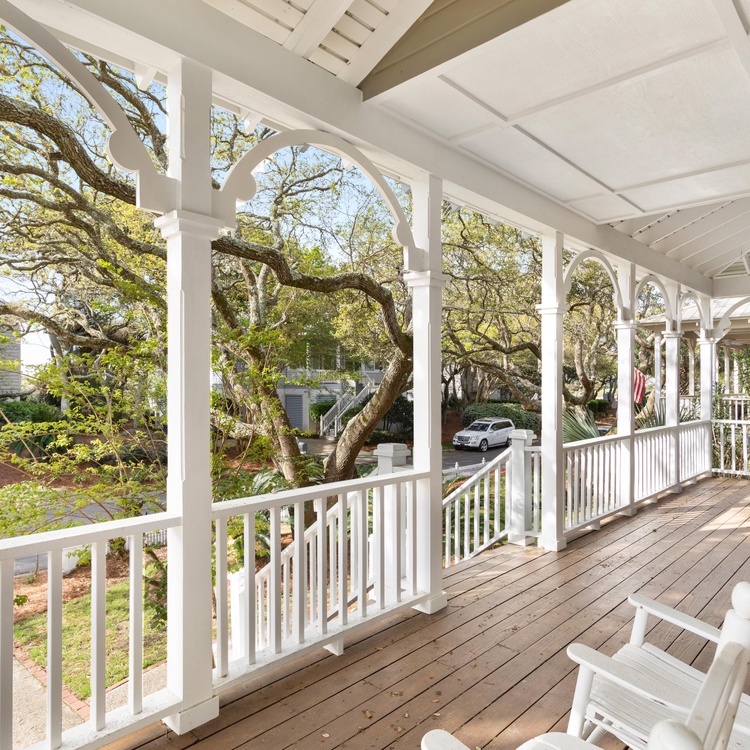 Enjoy the ocean breezes from one of the home's outdoor areas. Unwind on the front porch in one of the rocking chairs or dine al fresco at the outdoor table. In the back of the home, a screened porch offers additional lounging and dining space.
