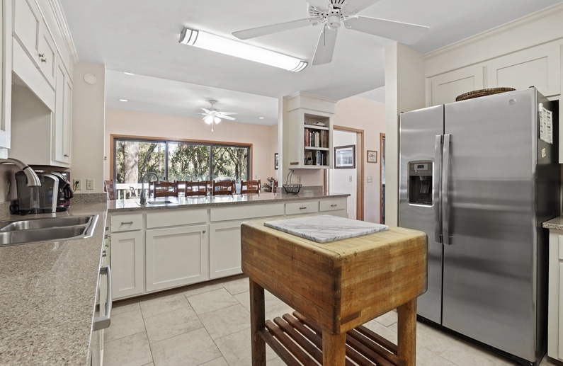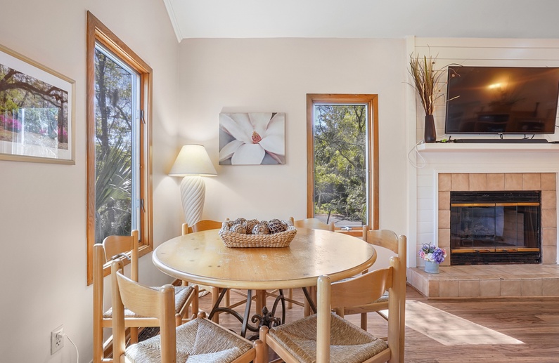 This family-friendly Kiawah Island vacation rental offers 6 bedrooms, views of the lush maritime forest, and large gathering areas. The home is a quick 5-minute walk from the beach.