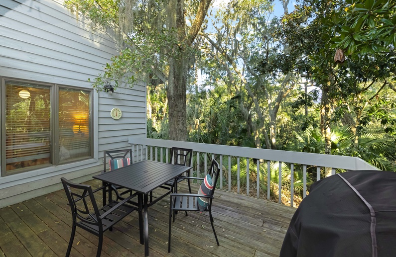 Enjoy relaxing and watching nature from the screened porch or back deck. The screened porch offers plenty of seating and a ceiling fan to keep cool in the warmer months. On the back deck, you will find a dining table with 4 chairs and a gas grill.