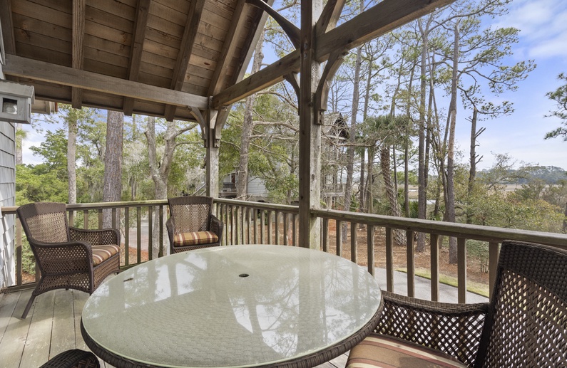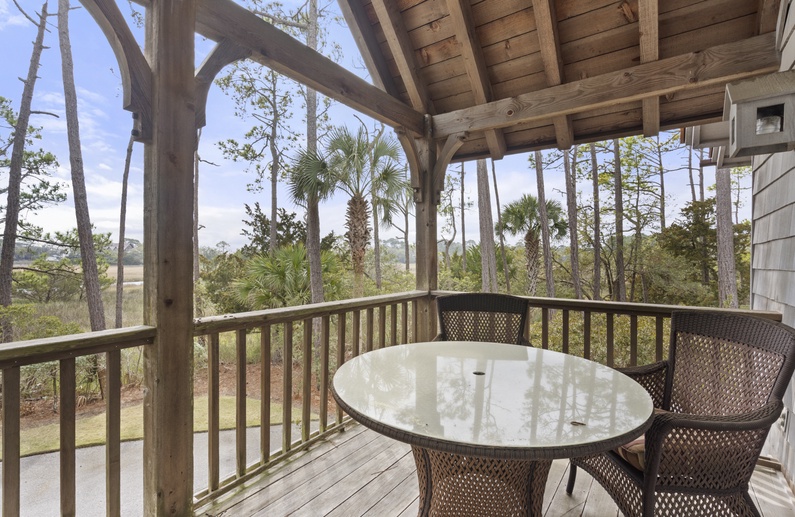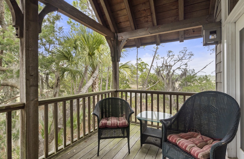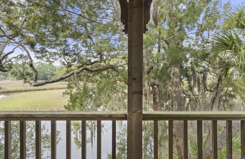 This Kiawah Island vacation rental offers 2 bedrooms, 2 private balconies, a screened porch, and stunning woodland and marsh views. Located in the private Vanderhorst Plantation, this home is perfect for embracing all that the Lowcountry has to offer. This vacation rental is an 11-minute bike ride to the nearest beach.