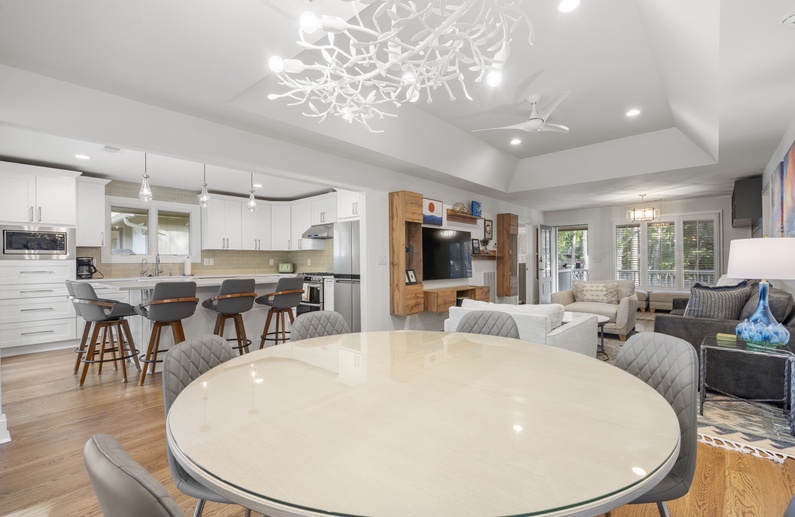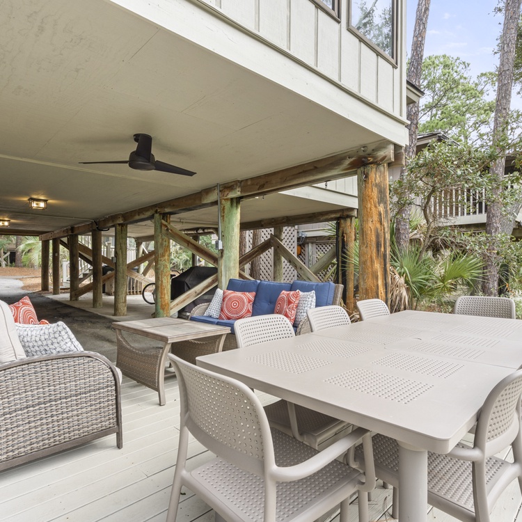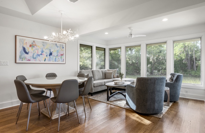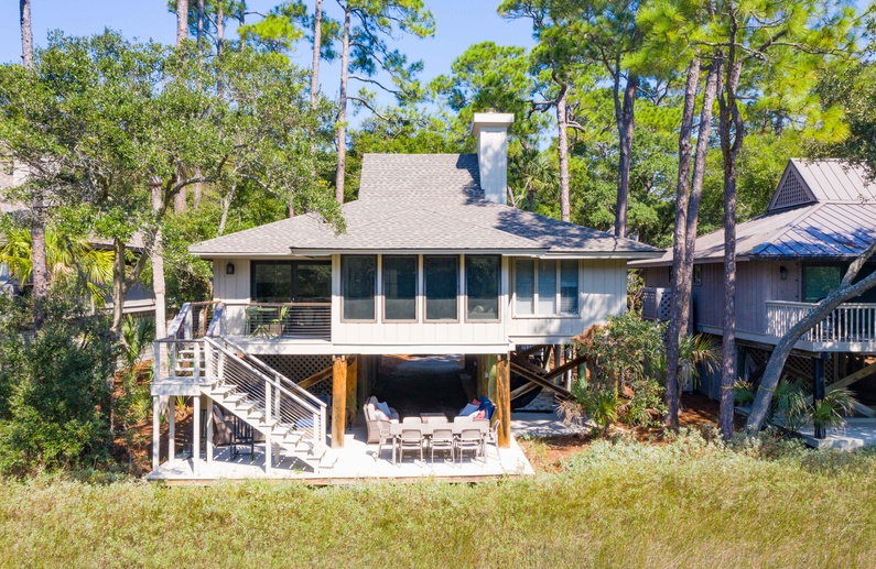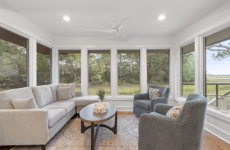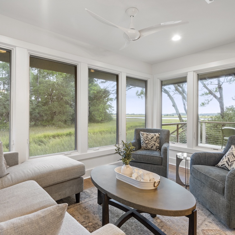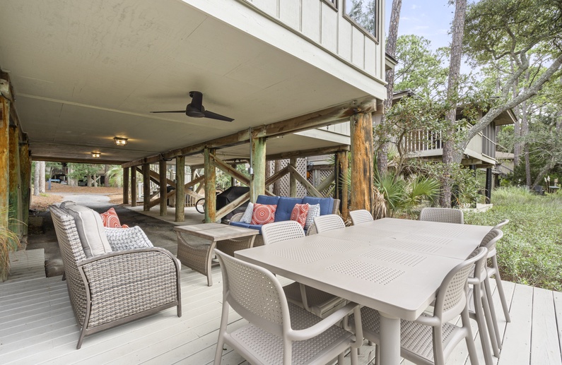Guests can enjoy relaxing outside in the downstairs outdoor living area or dine al fresco at the large dining table. The deck off the kitchen features a small table where you can enjoy a morning cup of coffee or an evening beverage while overseeing the beautiful marsh and river view. (Photos coming soon!)